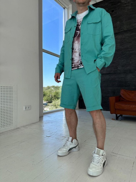Котоновий костюм чоловічий сорочка шорти стильна сорочка і зручні шорти - відмінний вибір для стильного і комфортного образу в спеку!