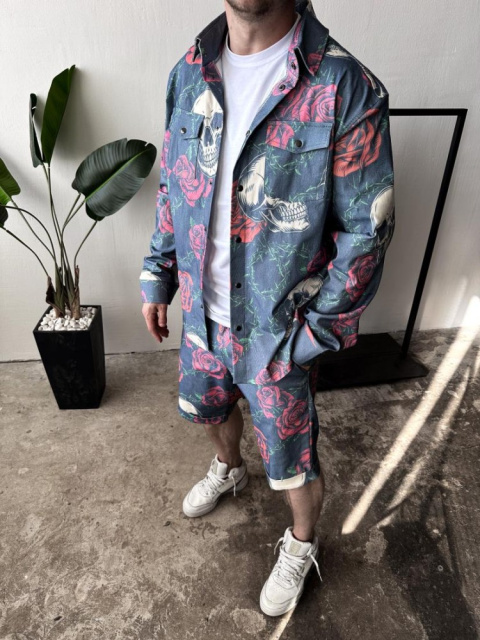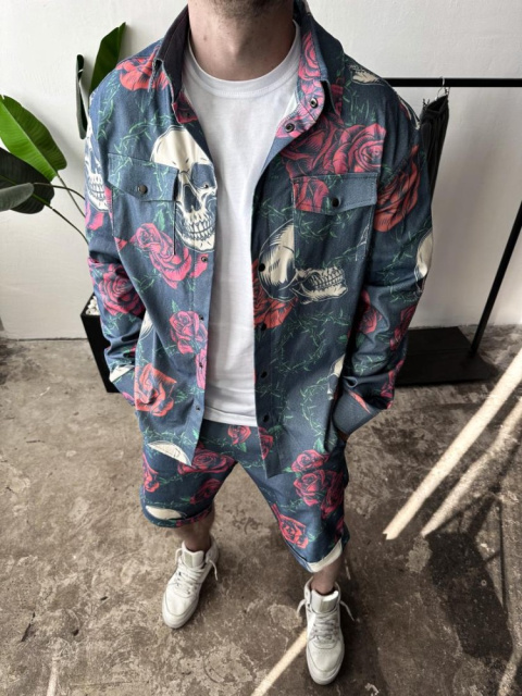 Стильний літній синій чоловічий костюм з яскравим дизайном стильна сорочка і зручні шорти - відмінний вибір для стильного і комфортного образу в спеку!