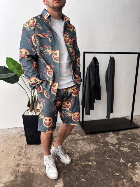 Комфортний літній чорний чоловічий костюм-двійка з трендовим дизайном стильна сорочка і зручні шорти - відмінний вибір для стильного і комфортного образу в спеку!