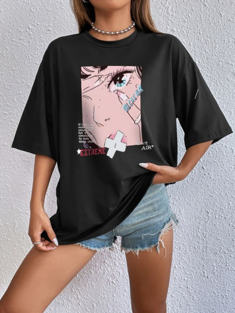 Жіноча чорна легка оверсайз футболка з модним принтом вражаючий союз ультрасучасних модних тенденцій і максимально можливого рівня зручності в дні, що палять