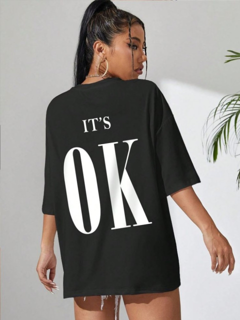 Жіноча чорна зручна оверсайз футболка зі стильним написом вражаючий союз ультрасучасних модних тенденцій і максимально можливого рівня зручності в дні, що палять