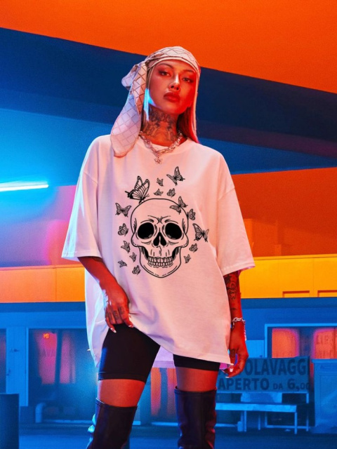 Стильна біла жіноча оверсайз футболка з модним принтом вражаючий союз ультрасучасних модних тенденцій і максимально можливого рівня зручності в дні, що палять