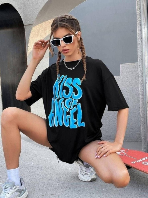 Чорна комфортна жіноча оверсайз футболка з яскравим принтом вражаючий союз ультрасучасних модних тенденцій і максимально можливого рівня зручності в дні, що палять