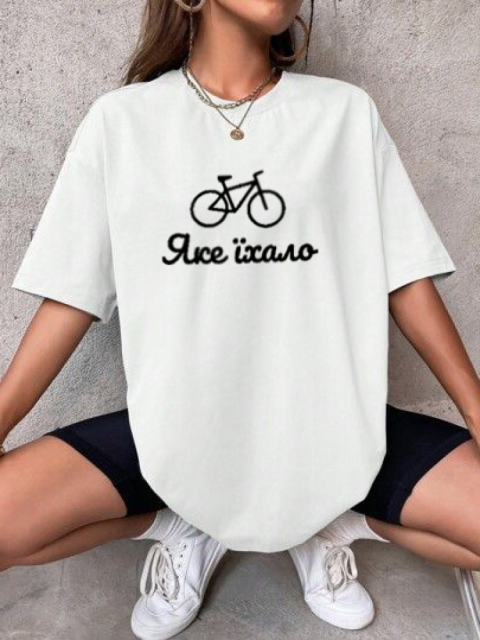 Комфортна жіноча біла оверсайз футболка з модним принтом вражаючий союз ультрасучасних модних тенденцій і максимально можливого рівня зручності в...