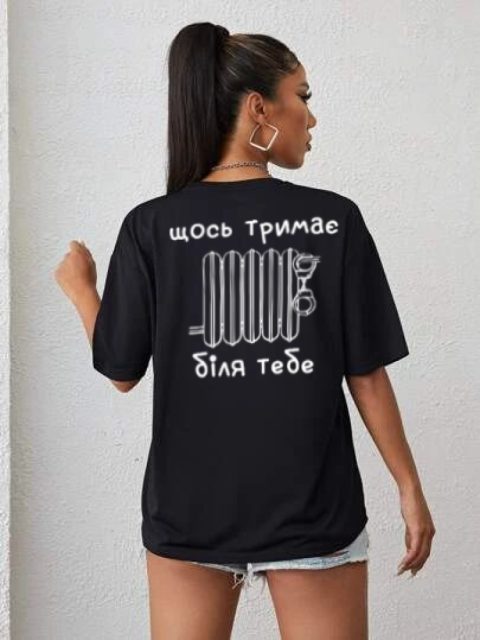 Жіноча чорна модна оверсайз футболка з трендовим принтом вражаючий союз ультрасучасних модних тенденцій і максимально можливого рівня зручності в...