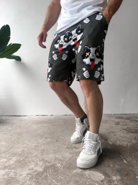 Чоловічі темно-зелені зручні літні трикотажні шорти з яскравим дизайном ідеальне поєднання сучасного стилю та зручності, яке підходить для тих, хто цінує комфорт і естетику у своєму літньому образі