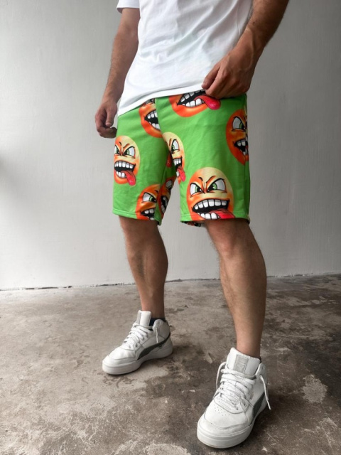 Зелені чоловічі легкі літні трикотажні шорти з яскравим принтом смайликів ідеальне поєднання сучасного стилю та зручності, яке підходить для тих, хто цінує комфорт і естетику у своєму літньому образі