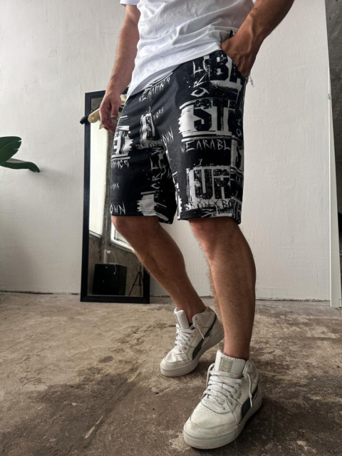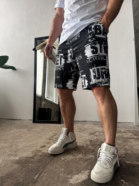 Літні чоловічі чорні комфортні трикотажні шорти з модними написами ідеальне поєднання сучасного стилю та зручності, яке підходить для тих, хто цінує комфорт і естетику у своєму літньому образі