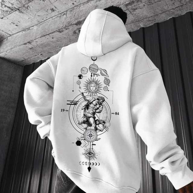 Біле чоловіче стильне оверсайз худі з трендовим дизайном унікальне поєднання модних тенденцій та комфорту для сучасних людей, які цінують яскраву...