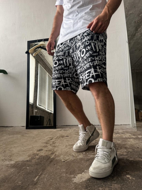 Чорні чоловічі зручні трикотажні шорти зі стильними написами ідеальне поєднання сучасного стилю та зручності, яке підходить для тих, хто цінує комфорт і естетику у своєму літньому образі