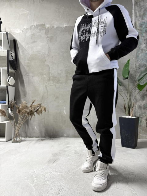 Спортивний костюм утеплений дтф чоловічий худі штани чорно-білий універсальний комплект для створення яскравого повсякденного образу незалежно від...
