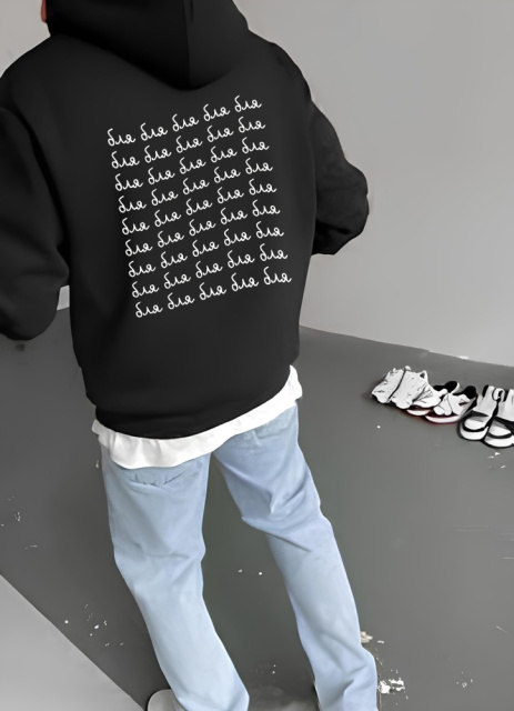 Чоловіче чорне стильне оверсайз худі з трендовим принтом унікальне поєднання модних тенденцій та комфорту для сучасних людей, які цінують яскраву...