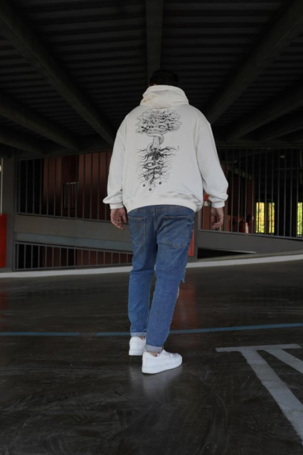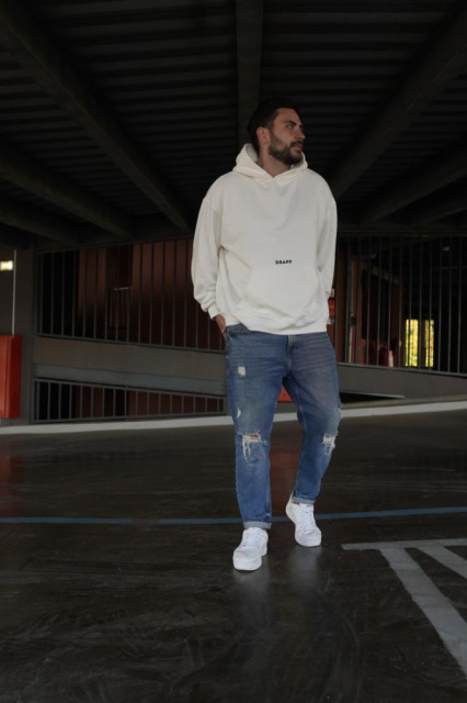 Біле чоловіче модне оверсайз худі з трендовим дизайном унікальне поєднання модних тенденцій та комфорту для сучасних людей, які цінують яскраву...