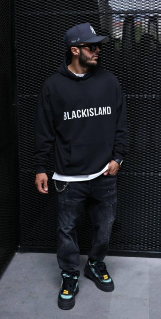 Чорне чоловіче стильне оверсайз худі з модним дизайном унікальне поєднання модних тенденцій та комфорту для сучасних людей, які цінують яскраву індивідуальність та практичність в одному стильному образі
