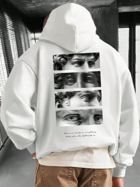 Біле чоловіче модне оверсайз худі з трендовим дизайном унікальне поєднання модних тенденцій та комфорту для сучасних людей, які цінують яскраву індивідуальність та практичність в одному стильному образі