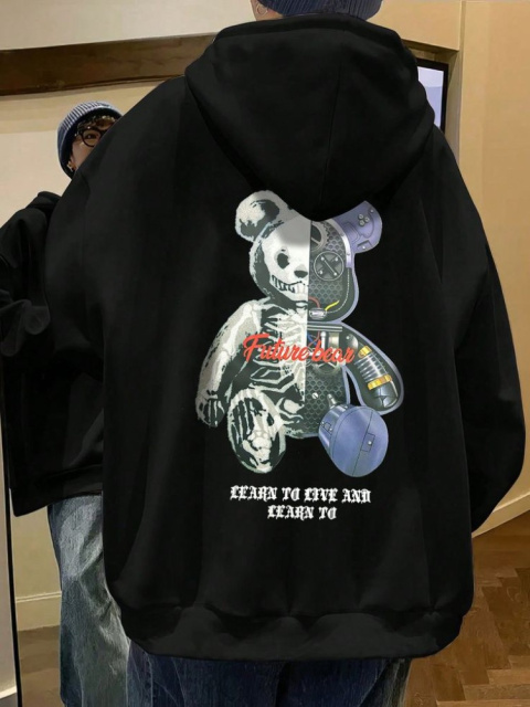 Худі чорне з ДТФ на флісі (оверсайз) | 78-397