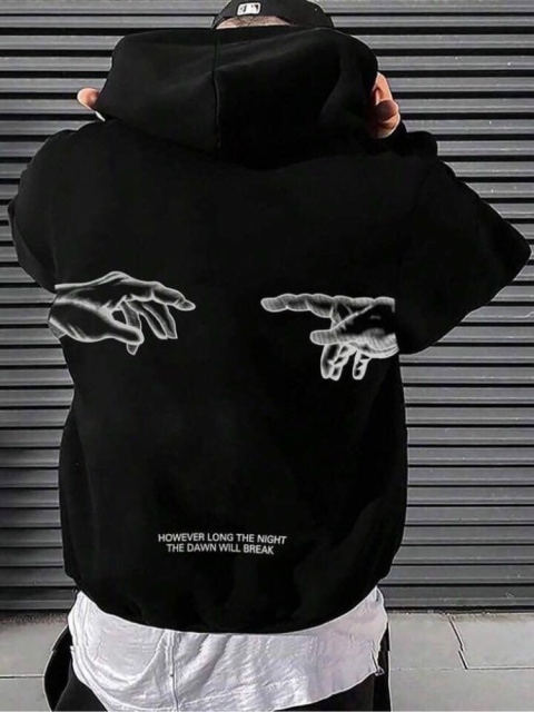Чоловіче чорне стильне оверсайз худі з трендовим принтом унікальне поєднання модних тенденцій та комфорту для сучасних людей, які цінують яскраву індивідуальність та практичність в одному стильному образі  Характеристики: Матеріал: фліс Країна виробник: Україна; Колір: Чорний Комплектація: Худі; Сезон: Весна/осінь/демісезон; Фасон: Оверсайз. Розмірна сітка: S Груди: 53 см. Рукав: 73 см. Довжина кофти: 64 см. M Груди: 55 см. Рукав: 75 см. Довжина кофти: 69 см. L Груди: 57 см. Рукав: 82 см. Довжина кофти: 71 см. XL Груди: 62 см. Рукав: 82 см. Довжина кофти: 72 см.