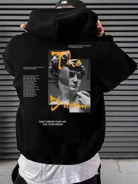Чоловіче чорне стильне оверсайз худі з трендовим принтом унікальне поєднання модних тенденцій та комфорту для сучасних людей, які цінують яскраву...