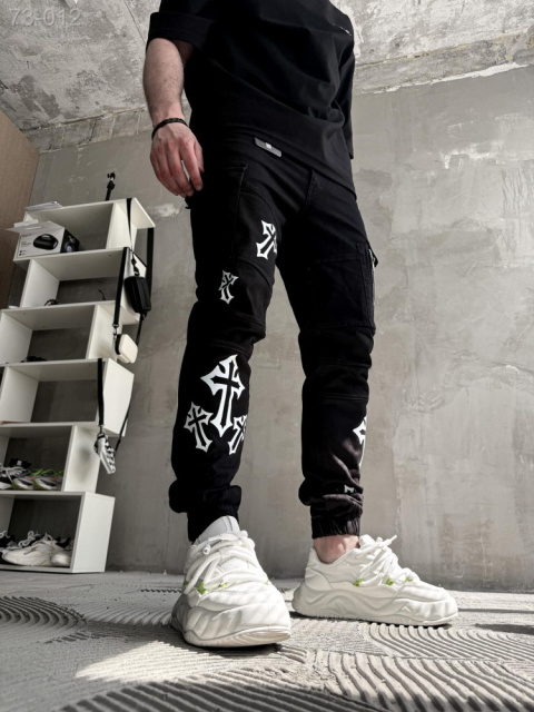 джинси дтф чоловічі чорного кольору стильні джогери з принтом ідеальне поєднання сучасного стилю, що підходить для сучасних людей, які прагнуть...