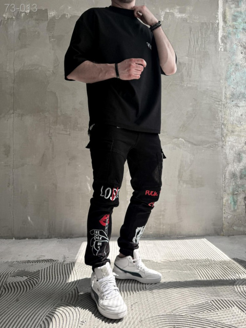 джинси дтф чоловічі чорного кольору стильні джогери з принтом ідеальне поєднання сучасного стилю, що підходить для сучасних людей, які прагнуть...