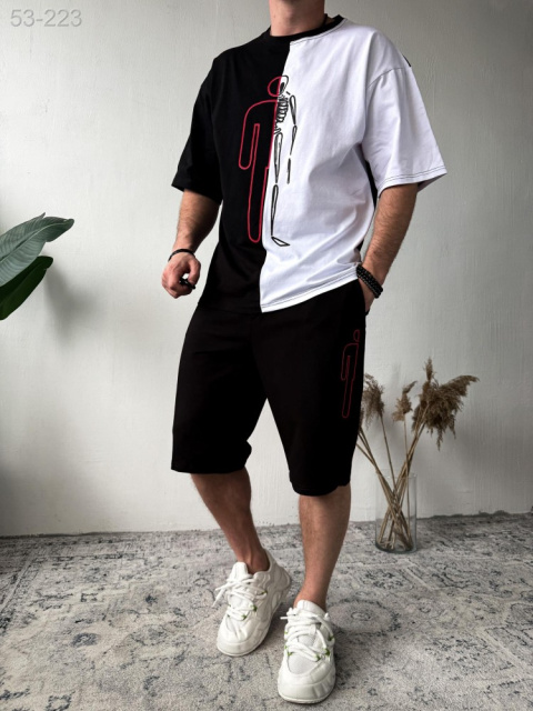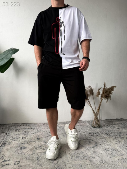 Комплект футболка шорти оверсайз стильний чорний білий легка футболка та зручні шорти - бездоганний вибір для модників та модниць, що прагнуть до створення стильних та елегантних образів, які будуть доречні як на міських вулицях, так і на пляжних курортах у розпал літа