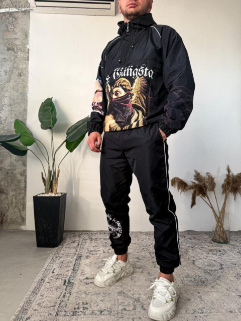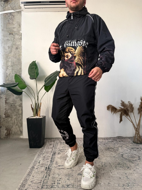 Костюм анорак джогери чоловічий стильний чорний універсальний комплект для створення яскравого повсякденного образу незалежно від погодних умов