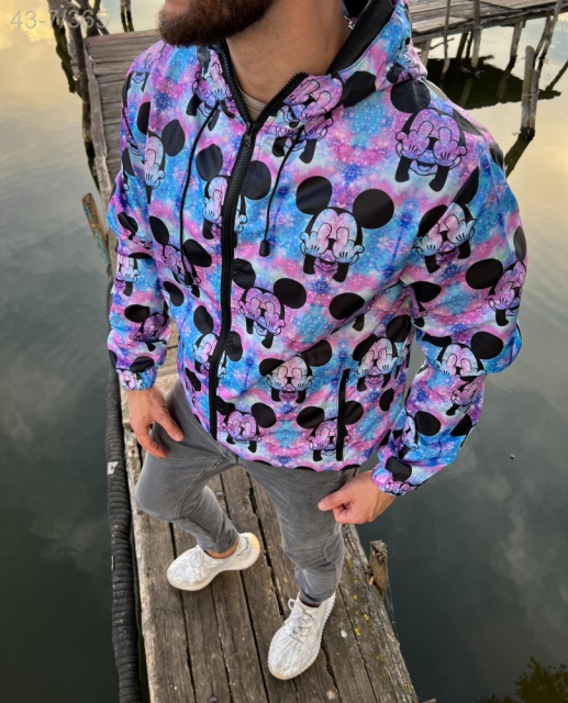 Весняна блакитна чоловіча вітрівка з Мікі Маусом ідеальний вибір на весняно-осінній сезон