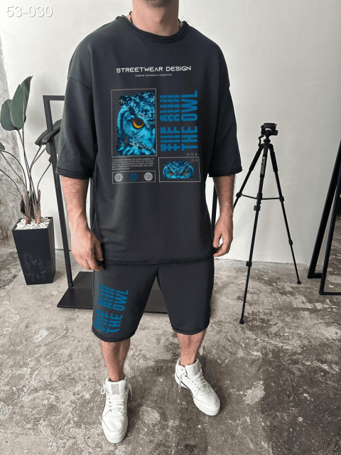 Стильний чоловічий графітовий літній спортивний костюм-двійка з модним дизайном легка футболка та зручні шорти - бездоганний вибір для модників та модниць, що прагнуть до створення стильних та елегантних образів, які будуть доречні як на міських вулицях, так і на пляжних курортах у розпал літа