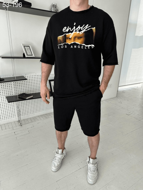 Комплект футболка та шорти чорного кольору з ДТФ принтом (оверсайз) легка футболка та зручні шорти - бездоганний вибір для модників та модниць, що прагнуть до створення стильних та елегантних образів, які будуть доречні як на міських вулицях, так і на пляжних курортах у розпал літа