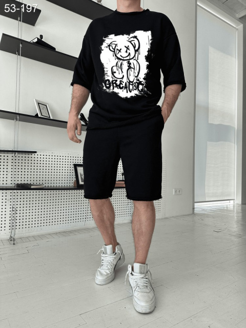 Комплект футболка та шорти ДТФ (петля оверсайз) - Чорний - 53-197