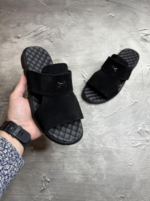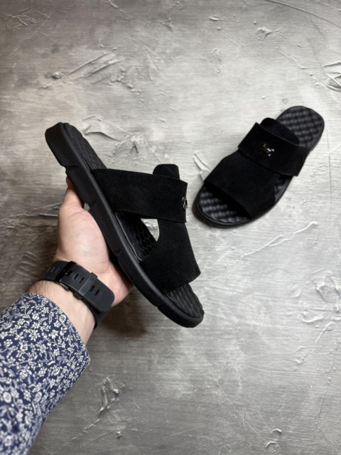 Шльопанці з високоякісної замші чорні