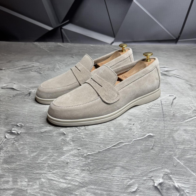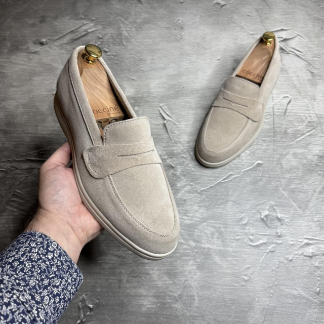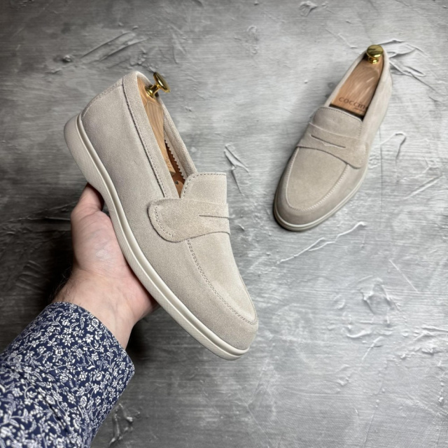 Демісезонні лофери з високоякісної м'якої натуральної замші колір бежевий