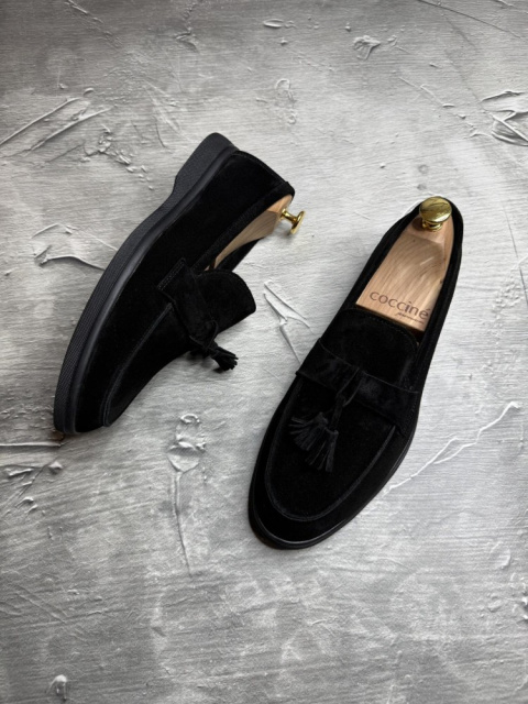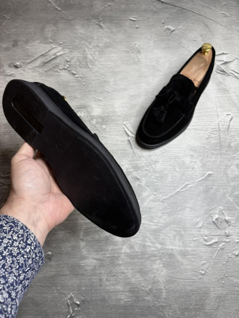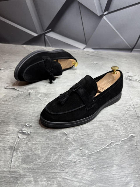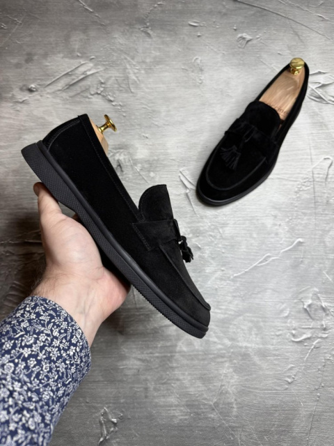 Демісезонні лофери з високоякісної м'якої натуральної замші колір чорний