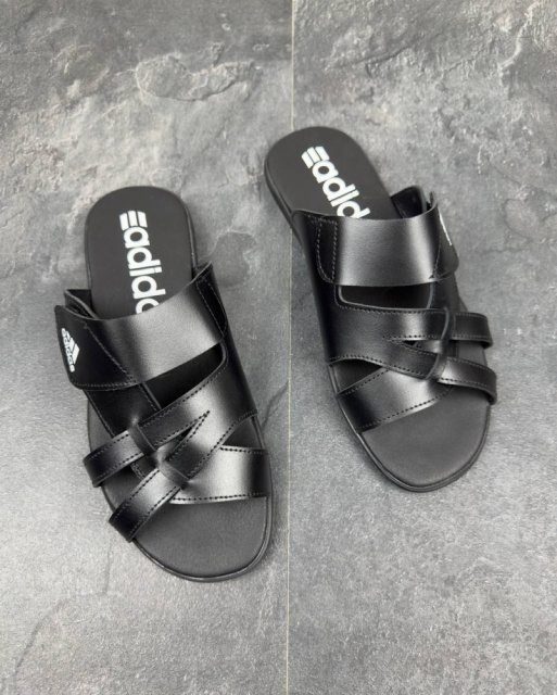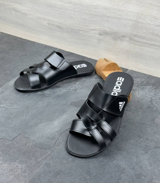 Шкіряні шльопанці Adidas колір чорний