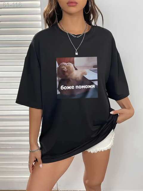 Жіноча футболка з дтф чорна- - 61-116