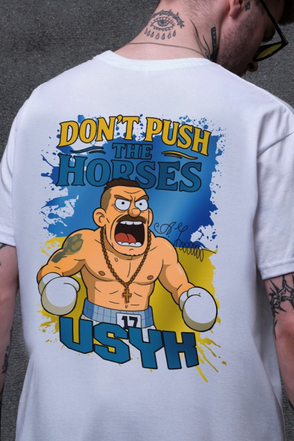 Матеріал: 100% Бавовна Стиль оверсайз являє собою одяг, який виглядає як би на пару розмірів більше, для нього характерна зручність і простота деталей. Подовжена форма рукавів і талії, відповідає всім вимогам сучасного OVERSIZE стилю. Нестандартне пошиття, спущений рукав - забезпечать максимальний комфорт при щоденній експлуатації. Футболка виготовлена з натуральної бавовни, що забезпечує дихаючий ефект і приємне відчуття на шкірі. Футболка присвячена сучасній легенді боксу, абсолютному Undisputed чемпіону світу Олександру Усику , а також його крилатим фразам. Якісний принт на спині у поєднанні із мінімалістичним лого компанії на грудях, виконаний за допомогою технології "DTF", що є найбільш стійким до зовнішніх чинників, та екологічним. Переваги: Універсальний крій — пасує будь-якій фігурі. Якісний натуральний матеріал. Стійкість до зносу і частого прання. Добре поєднується з джинсами, штанами, шортами та спортивним стилем. Ця оверсайз футболка стане базовим елементом вашого гардеробу — чудовий варіант для прогулянок, відпочинку чи щоденних справ. Щільність тканини: 180 г/м. Догляд: прання у звичайному режимі при температурі не вище 30°C, без віджиму; відбілювання заборонено; сушити в підвішеному стані, без застосування штучної сушки. Колір виробу може відрізнятися на декілька тонів. S/M Напівобхват плечі - 52 Напівобхват грудей - 57 Довжина по спині - 72 Довжина рукава - 21 L/XL Напівобхват плечі - 56 Напівобхват грудей - 61 Довжина по спині - 75 Довжина рукава - 22 2XL/3XL Напівобхват плечі - 58 Напівобхват грудей - 64 Довжина по спині - 81 Довжина рукава - 22