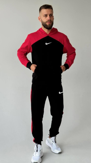 Чоловічий спортивний костюм Nike чорний з червоними вставками