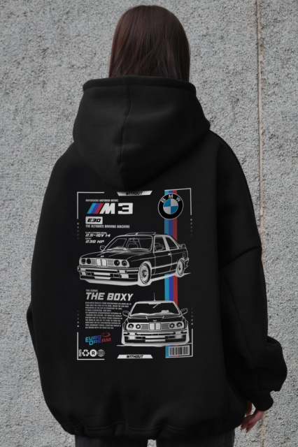 Оверсайз худі толстовка на флісі з капюшоном та принтом Without BMW Black
