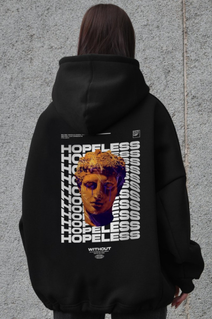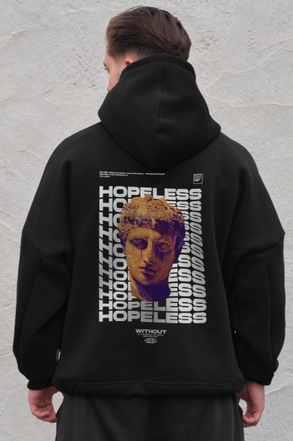 Оверсайз худі толстовка на флісі з капюшоном та принтом Without Hopeless Black