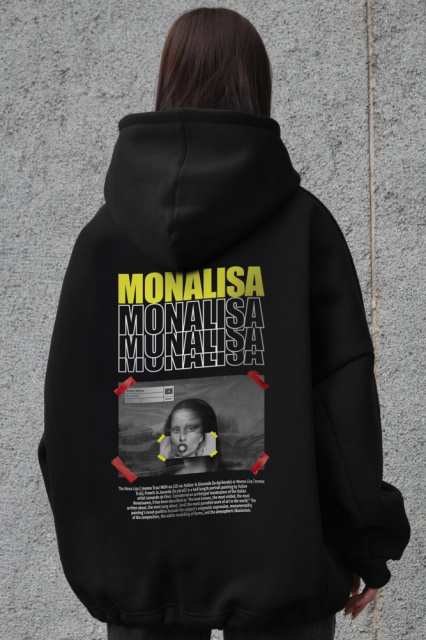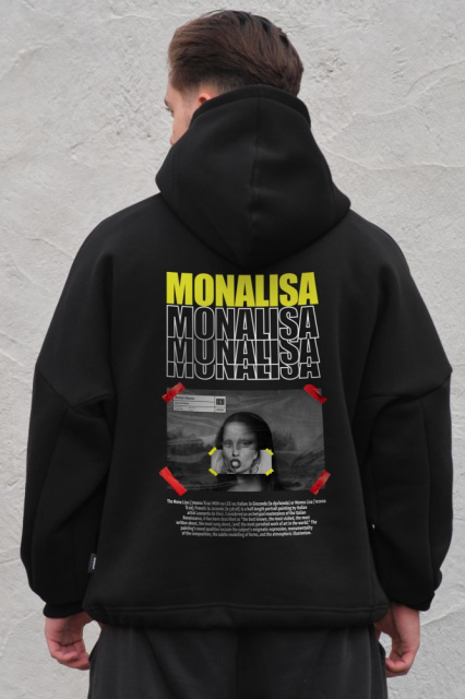 Оверсайз худі толстовка на флісі з капюшоном та принтом Without Monalisa Black