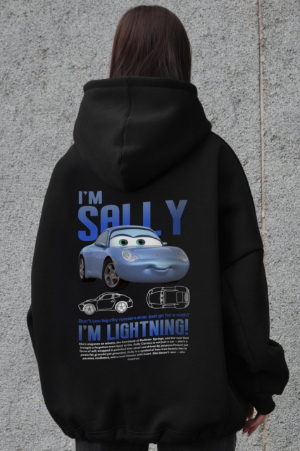 Оверсайз худі толстовка на флісі з капюшоном та принтом Without Sally Black