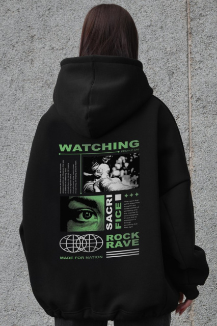 Оверсайз худі толстовка на флісі з капюшоном та принтом Without Watching Black