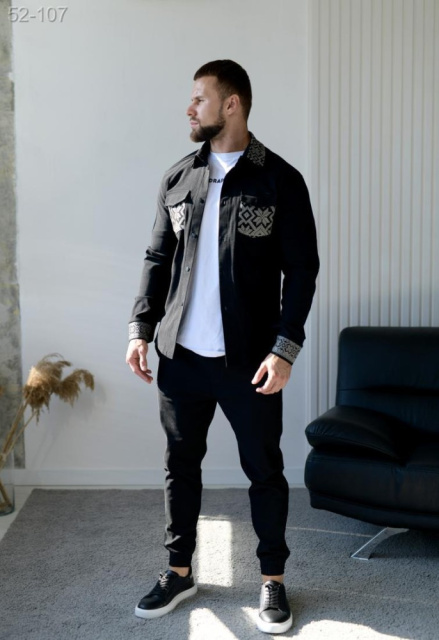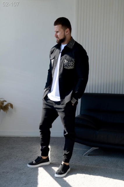 костюм чоловічий стильний жакет штани чорного кольору стильна сорочка і зручні штани - відмінний вибір для стильного і комфортного образу в спеку!