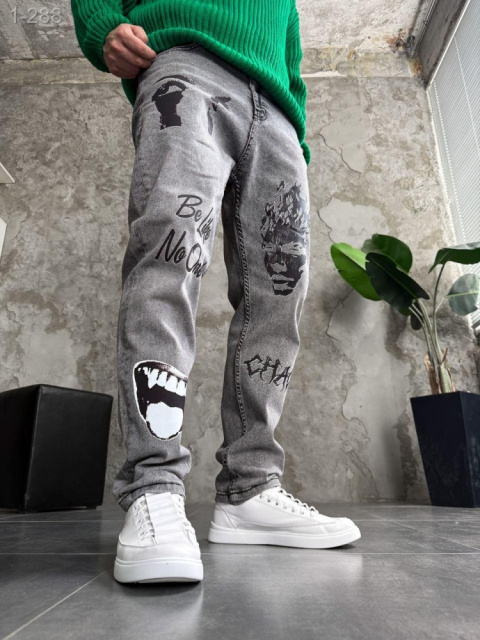 Стильні чоловічі джинси з ДТФ з принтом ідеальне поєднання сучасного стилю, що підходить для сучасних людей, які прагнуть поєднання функціональності