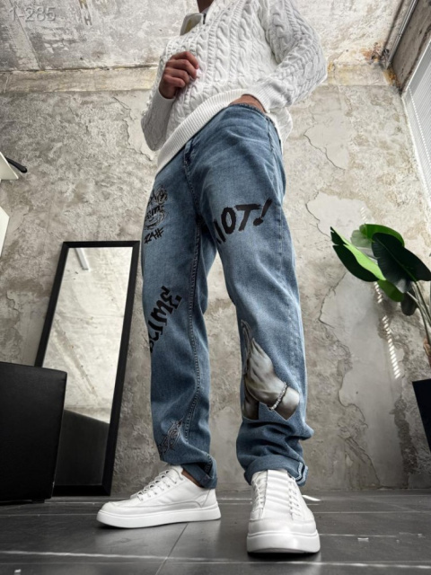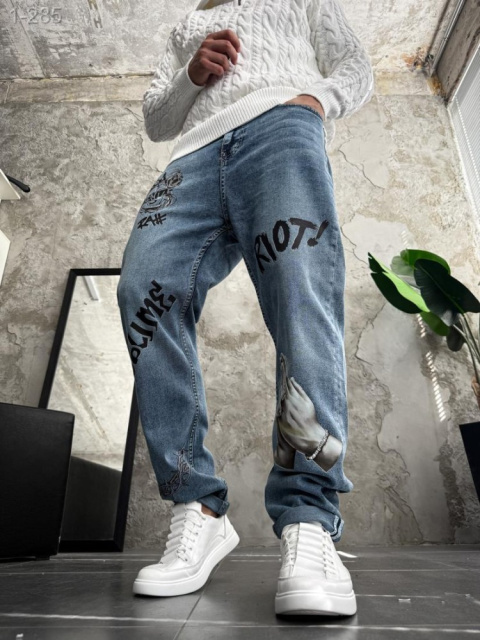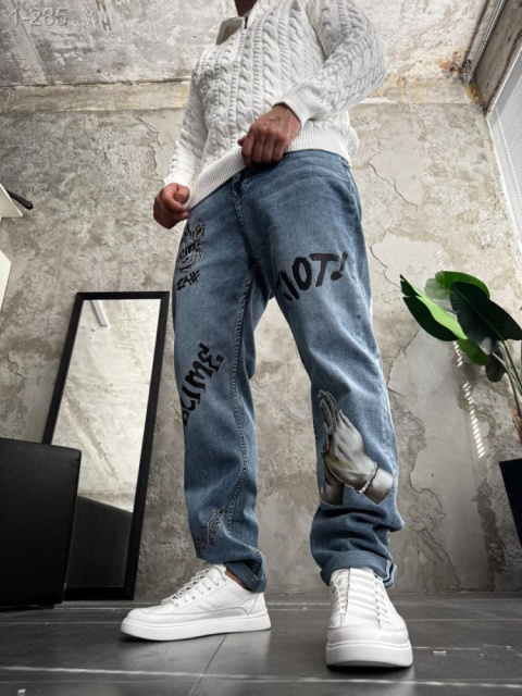 Стильні чоловічі джинси з ДТФ з принтом ідеальне поєднання сучасного стилю, що підходить для сучасних людей, які прагнуть поєднання функціональності