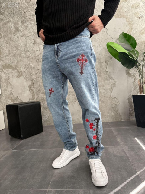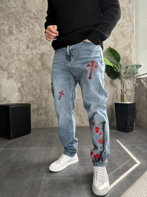 Стильні чоловічі джинси з ДТФ з принтом ідеальне поєднання сучасного стилю, що підходить для сучасних людей, які прагнуть поєднання функціональності та естетики у своєму щоденному образі