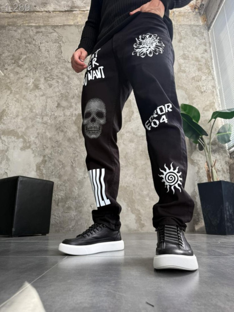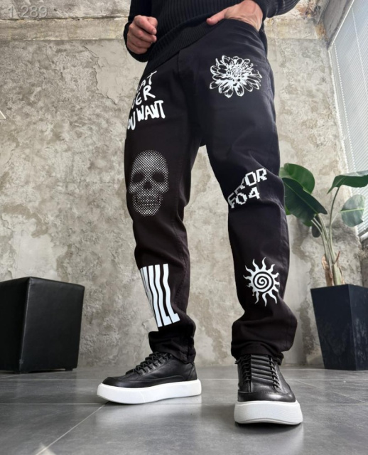 Стильні чоловічі джинси з ДТФ з принтом ідеальне поєднання сучасного стилю, що підходить для сучасних людей, які прагнуть поєднання функціональності та естетики у своєму щоденному образі