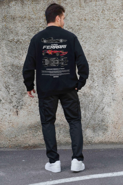 Утеплений оверсайз світшот на флісі з принтом Without Ferrari Black
