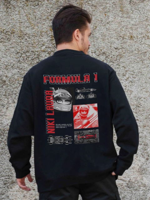 Утеплений оверсайз світшот на флісі з принтом Without Lauda Black