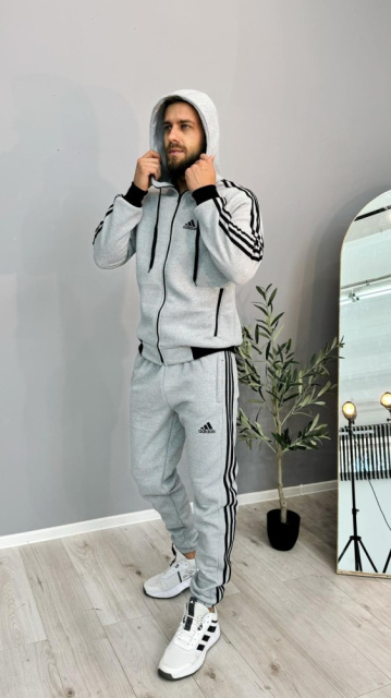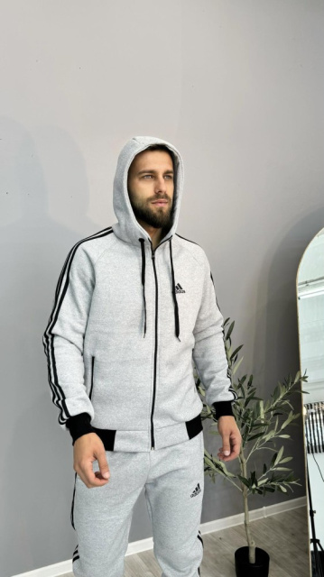Утеплений костюм Adidas унісекс з капюшоном сірий